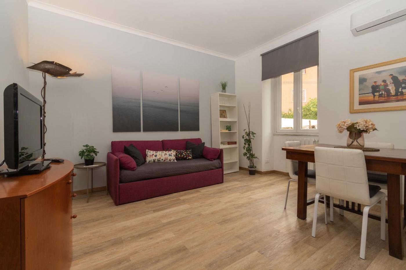 One-Bedroom Apartment. Featuring a private entrance, this air-conditioned apartment comprises 1 living room, 1 separate bedroom and 1 bathroom with a shower and a bidet. Meals can be prepared in the kitchen, which comes with a stovetop, a refrigerator, kitchenware and an oven. The apartment provides a washing machine, a tea and coffee maker, a seating area, a flat-screen TV with streaming services, as well as garden views. The unit offers 2 beds.